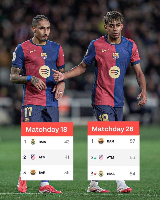 上赛季巴萨在联赛踢到18轮时,一度落后皇马多达8分,不过在第26轮时反超了3分。所以哪怕在伯纳乌输球后,巴萨本赛季落后5分,球队依旧有机会完成翻盘。