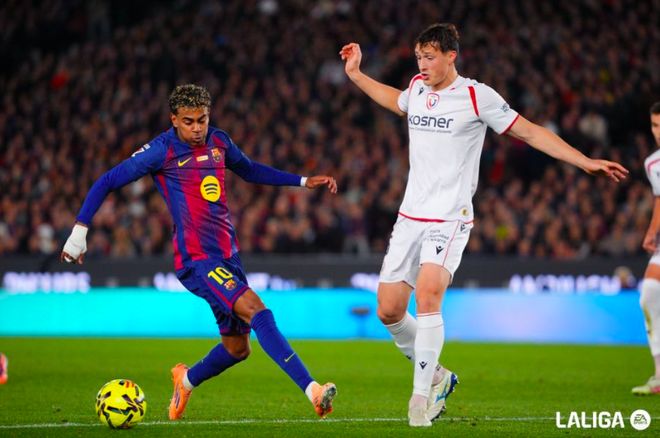 最终,巴萨2-0战胜奥萨苏纳,迎来联赛7连胜,先赛的情况下,巴萨将积分榜上的领先优势扩大到了7分。